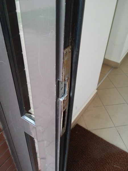 Zamiast naprawy Administrator postanowił rozwiązać problem inaczej i zlecił wymontowanie zamka w drzwiach.