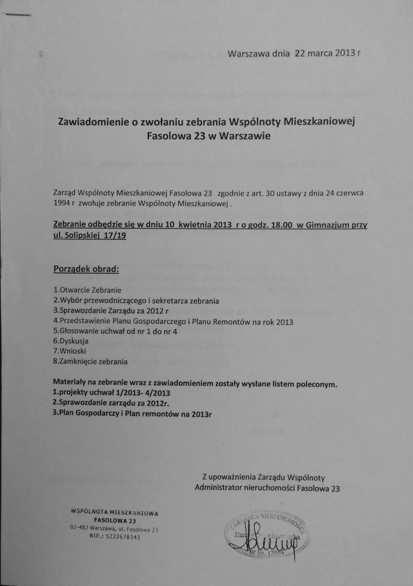 Zawiadomienie o zebraniu 2013-03-22